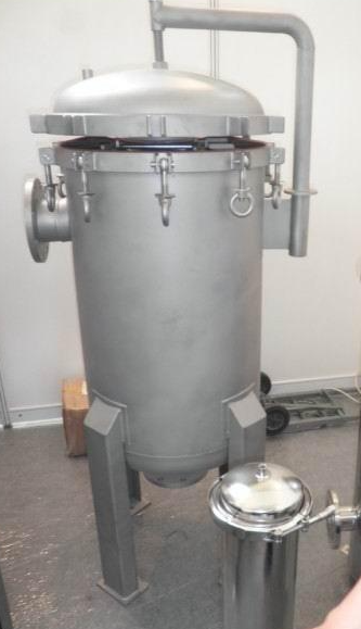 前置袋式過濾器的操作方法比較簡單,在使用時只需將廠家所需要細度等級的濾袋安裝在設(shè)備的濾筒內(nèi),檢查O型密封圈是否完好,然后旋緊濾筒蓋環(huán)形螺栓,即可投入工作。泵啟動后,過濾機上壓力表微微上升,初始壓力約0.05MPa左右,隨著使用時間的延長,缸內(nèi)濾渣逐漸增多,當壓力達到0.4MPa時,應(yīng)停機打開筒蓋,檢查濾機袋留渣情況,可更換濾袋繼續(xù)使用(濾袋通過清洗一般可重復(fù)使用)。過濾機壓力一般調(diào)在0.1-0.3MPa比較合適,可通過回流管路或泵上回流閥來調(diào)節(jié),過濾壓力過高會損壞濾袋以及保護網(wǎng),需格外注意。